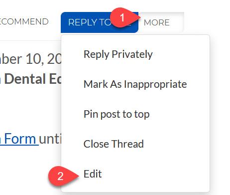 3. Click My Contributions > My List of Contributions 4. Click the title of the discussion post you want to edit